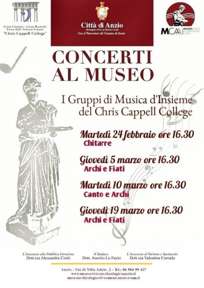 Ad Anzio la rassegna musicale Concerti al Museo, è un’iniziativa con protagonisti gli studenti dei gruppi di musica d’insieme del Chris Cappell College.