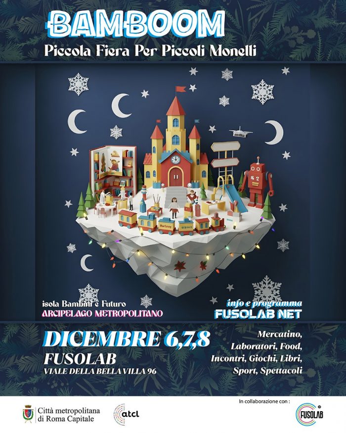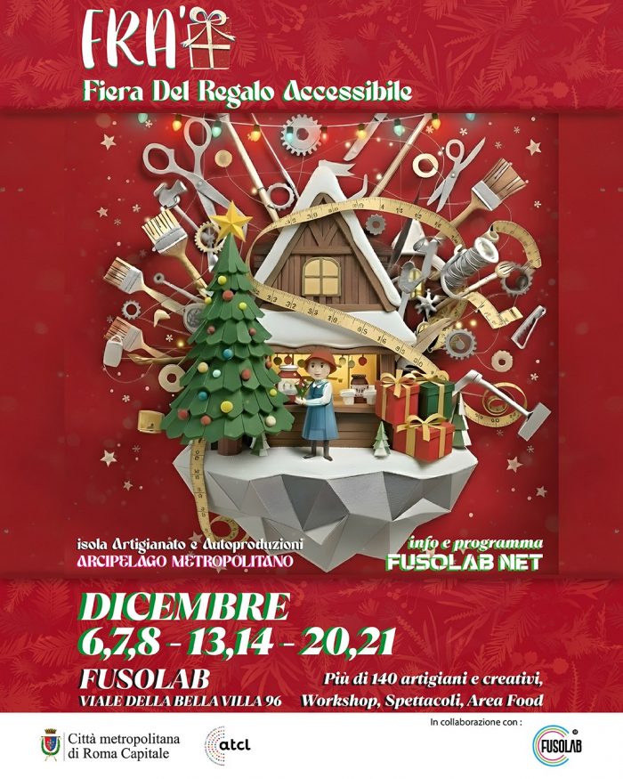 Dal 6 all’8 dicembre, al Fusolab, tocca a Bamboom, fiera per bambini con handmade, laboratori, area editoria e tre spettacoli al giorno. Negli stessi giorni, e poi il 13–14 e 20–21 dicembre, torna al Fusolab FRA’, fiera del regalo accessibile con artigiani, maker, workshop e performance di strada.