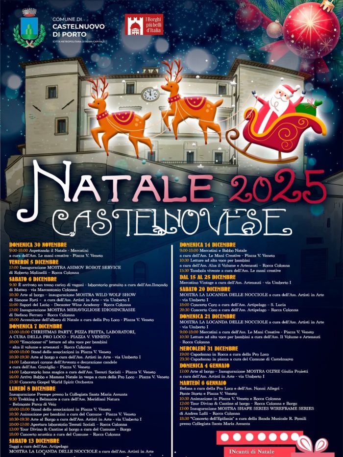 Il borgo di Castelnuovo di Porto torna a vestire i colori e l’atmosfera del Natale con un calendario di eventi pensato per famiglie, bambini e cittadini di ogni età.