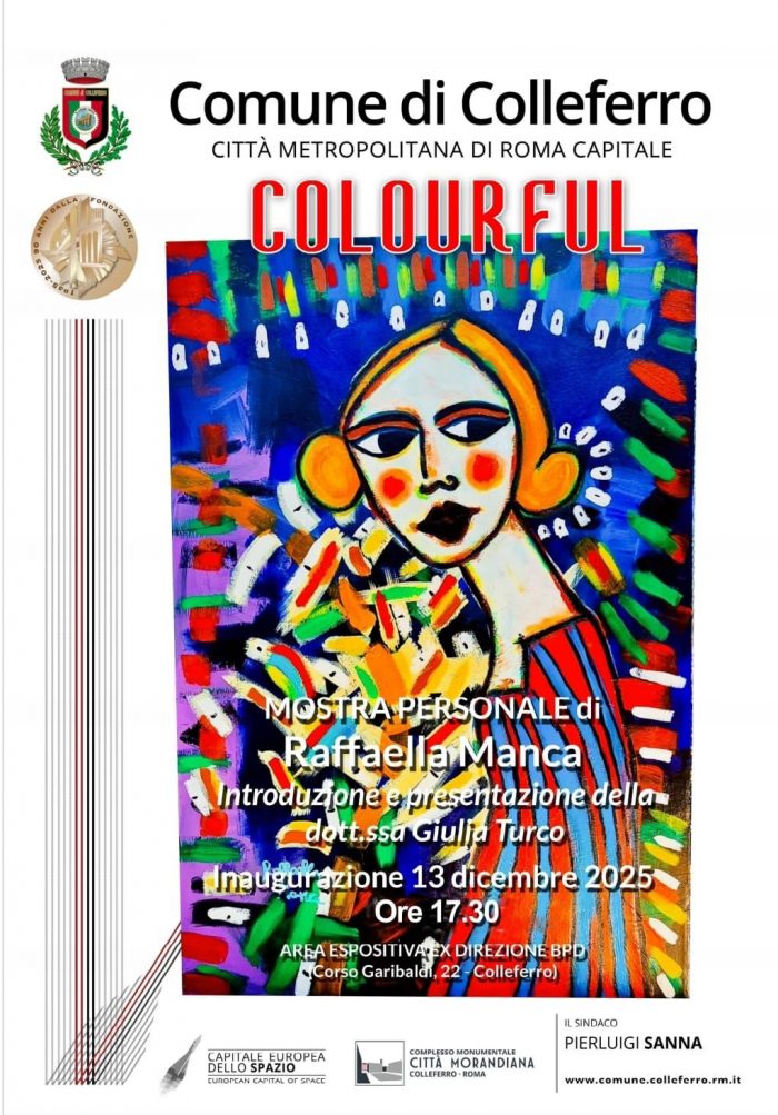 Sabato 13 dicembre alle 17:30, a Colleferro, presso il Palazzo ex Direzione BPD, sarà inaugurata Colourful, la nuova mostra dell’artista Raffaella Manca, cagliaritana residente a Colleferro.