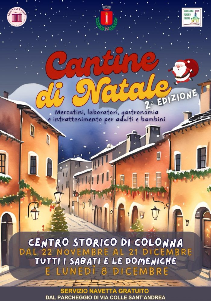 Colonna torna a vestirsi di magia con la seconda edizione delle Cantine di Natale, in programma fino al 21 dicembre, ogni sabato e domenica e lunedi 8 dicembre, a partire dalle ore 11:00.