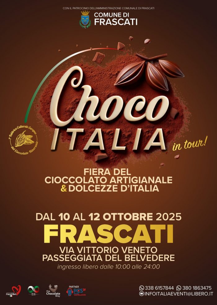 Arriva a Frascati, Choco Italia in Tour, l’evento dedicato al cioccolato artigianale e alle eccellenze dolciarie italiane, pensato per grandi e piccini. La fiera, da venerdì 10 ottobre a domenica 12 ottobre, celebra la tradizione e la qualità del cioccolato made in Italy, esperienza unica nel cuore della cultura dolciaria italiana.