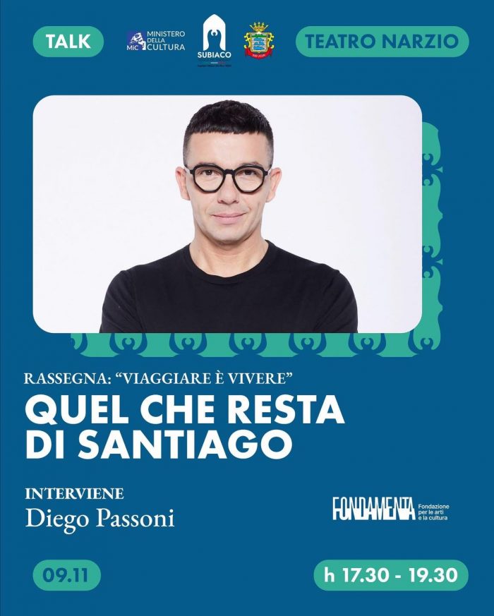 A Subiaco, domenica 9 novembre presso il Teatro Cinema Narzio, un appuntamento dedicato al viaggio più antico e simbolico del mondo, ma anche a quello più intimo e personale. Diego Passoni sarà protagonista dell’incontro Quel che resta di Santiago, un dialogo aperto e profondo sul Cammino di Santiago come esperienza di trasformazione e riscoperta di sé.