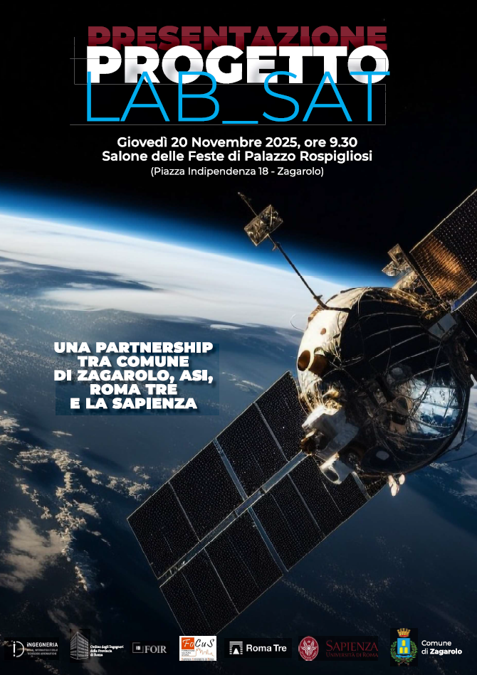 A Zagarolo, giovedi 20 novembre, alle ore 9:30, presso il Salone delle Feste di Palazzo Rospigliosi la presentazione ufficiale di Lab_Sat, il progetto finanziato dall’Agenzia Spaziale Italiana e sviluppato dall’Amministrazione comunale in collaborazione con il Dipartimento di Ingegneria Civile, Informatica e Aeronautica dell’Università Roma Tre e il Centro Fo.Cu.S. della Sapienza Università di Roma.