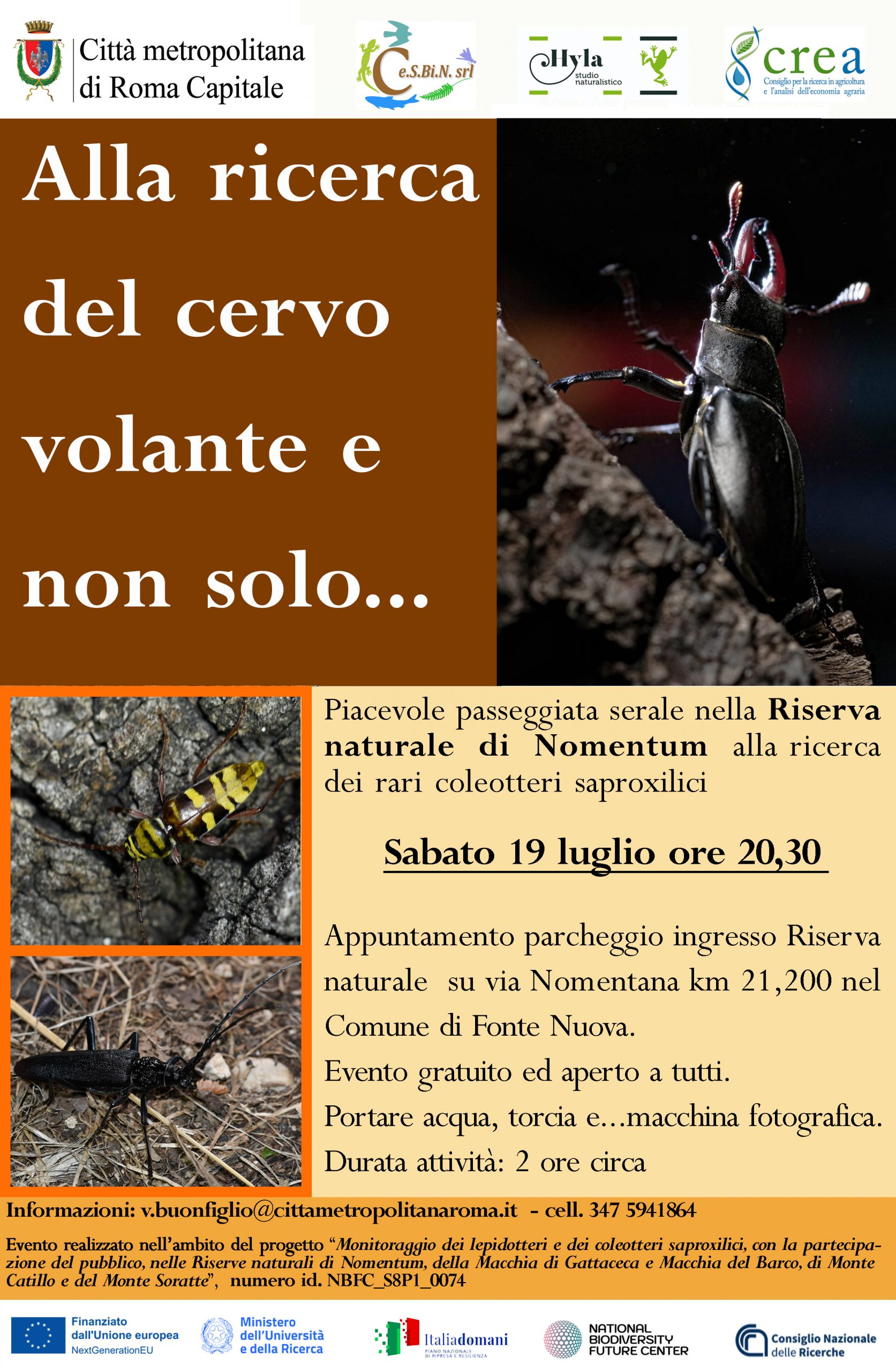 Sabato 19 luglio ore 20,30 presso la Riserva naturale di Nomentum: alla ricerca del cervo volante e non solo
