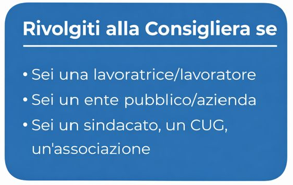 La/il Consigliera/e di Parità è uno strumento di tutela per lavoratrici e lavoratori contro le discriminazioni in ragione del genere sul lavoro.