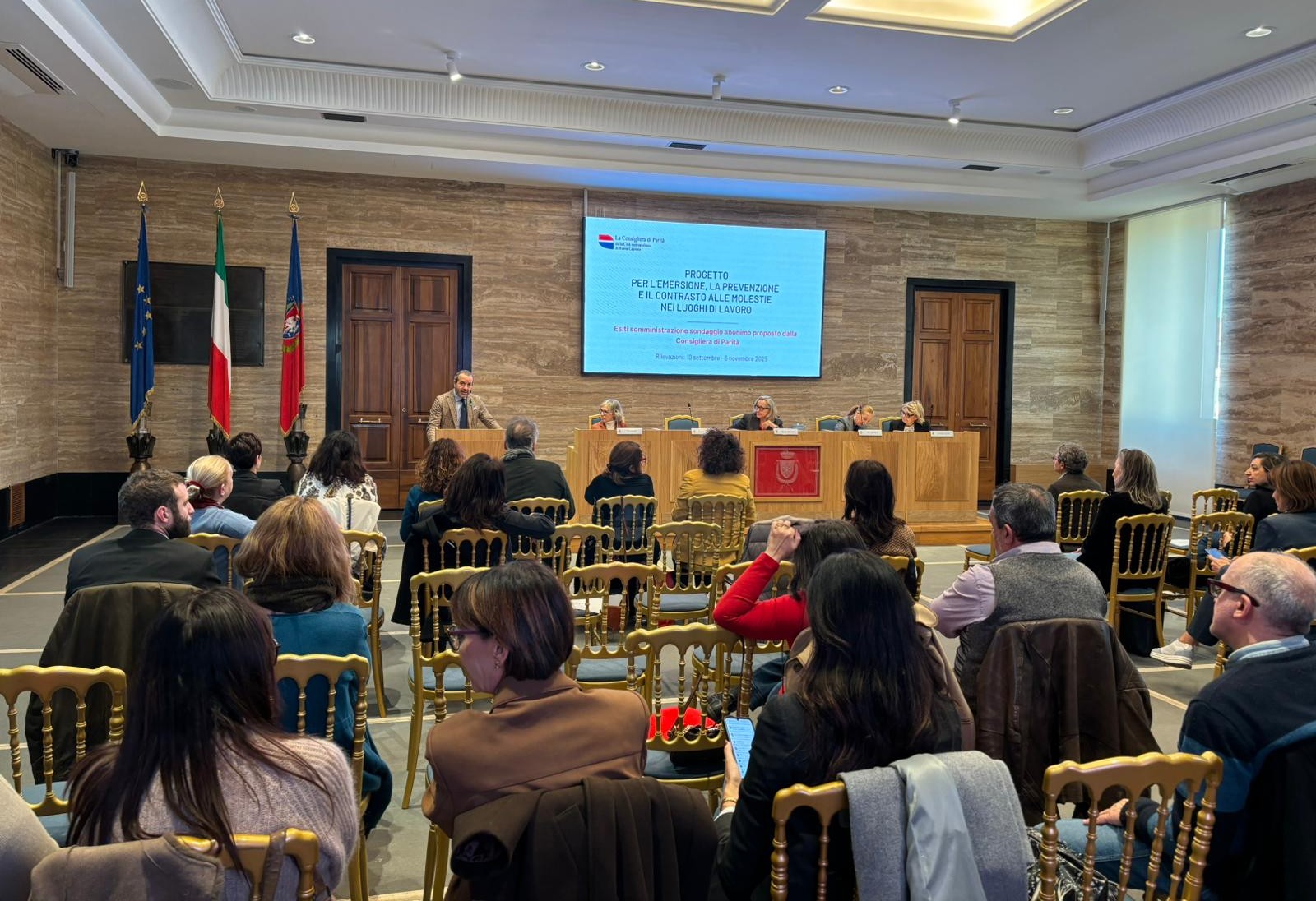 Presentati oggi, a Palazzo Valentini, gli esiti della campagna autunnale del progetto “Emersione, prevenzione e contrasto alle molestie sui luoghi di lavoro”, promosso dalla Consigliera di Parità della Città metropolitana di Roma capitale Gianna Baldoni con la collaborazione di Cgil, Cisl, Uil e Usb e di alcuni Comitati Unici di Garanzia delle Univesità.