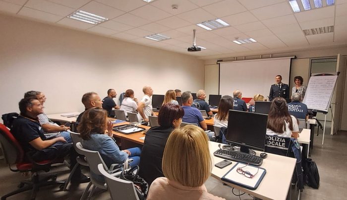 Il 3 settembre, presso il Comando di via Giorgio Ribotta, si è svolta la prima giornata formativa delle cinque previste: venti agenti di Polizia Locale provenienti dalla Polizia metropolitana di Roma Capitale, da Roma Capitale e dai Comuni di Colleferro, Bracciano e Tivoli hanno partecipato ad un corso di aggiornamento per rafforzare competenze e uniformare le modalità di intervento. Successivamente, saranno loro stessi a portare nelle scuole giornate formative dedicate agli studenti.