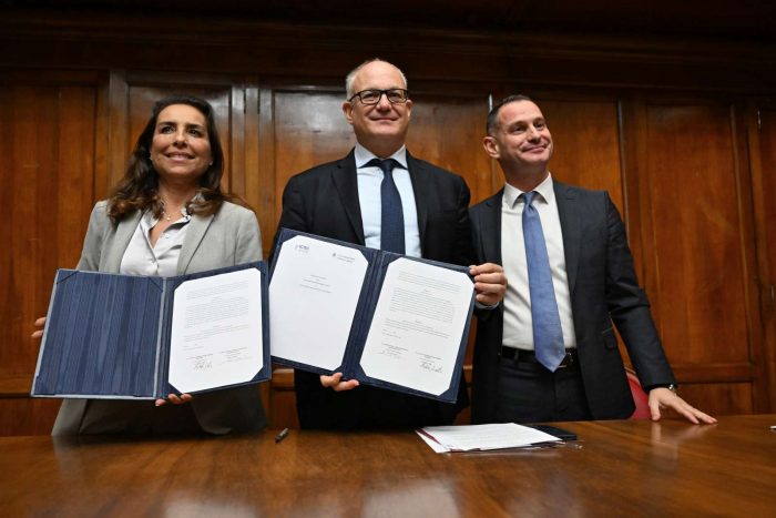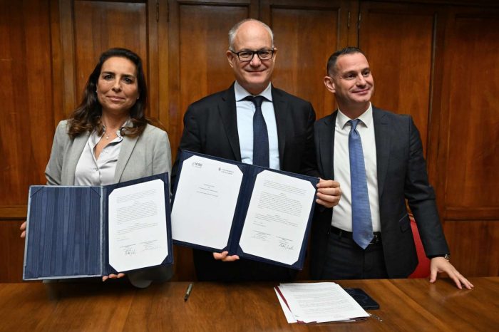 Firmato questa mattina a Palazzo Valentini il Protocollo d’Intesa triennale tra Città Metropolitana, rappresentata dal Sindaco Roberto Gualtieri, e l’Istituto per il Credito Sportivo e Culturale, rappresentato dall’Amministratore Delegato Antonella Baldino, per la promozione e lo sviluppo sostenibile dello Sport e della Cultura. Si tratta del primo protocollo che ICSC sottoscrive con una Città Metropolitana avente ad oggetto l’operatività degli spazi sportivi scolastici.